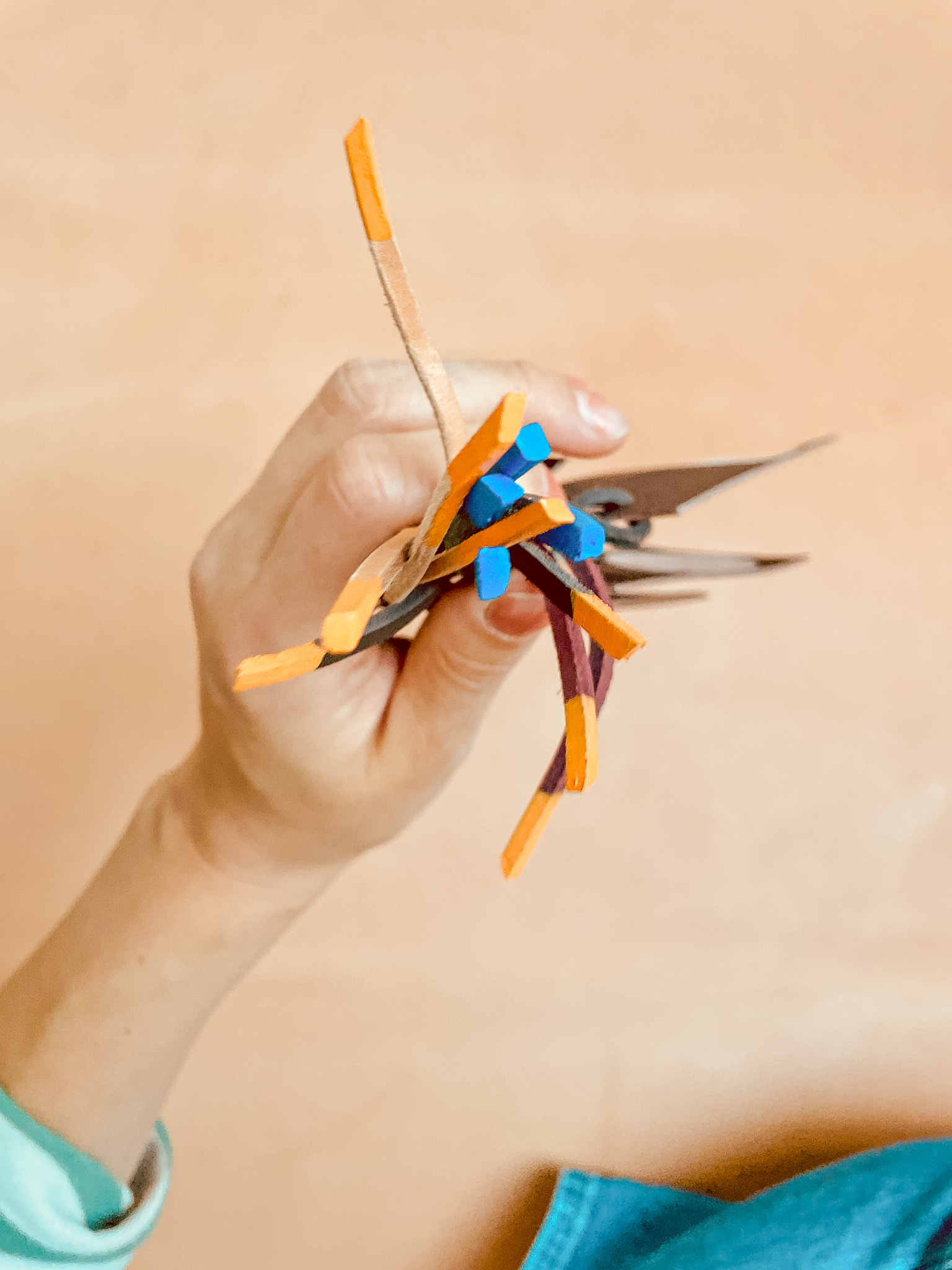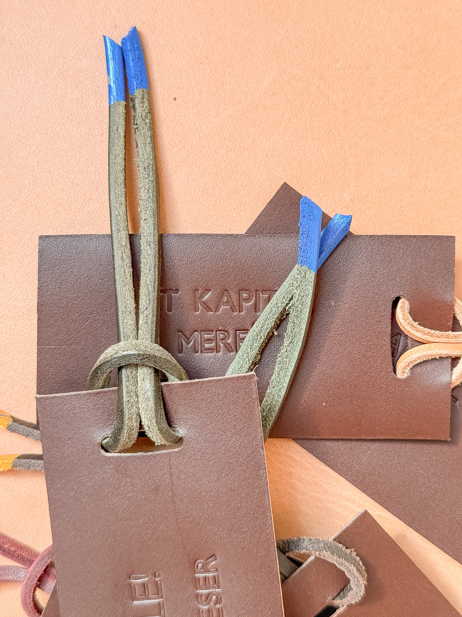 Hvert bogmærke er håndlavet og præget med tekst, det er tyndt men robust og kan holde til rigtig mange bøger. Kernelæderet udvikler en smuk patina over tid, så dit bogmærke kun bliver flottere, jo mere det bruges. Den rå lædersnor med farvet spids giver et ekstra strejf af karakter, og gør det nemt at finde tilbage til siden, hvor du slap.