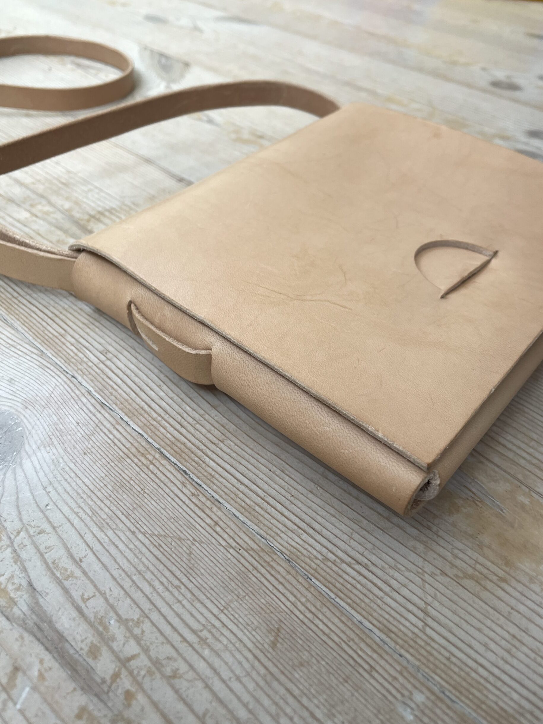 En taske, der er skåret til det mest nødvendige – og intet mere. Denne crossbody taske er lavet i ét stykke kraftigt, vegetabilsk garvet kernelæder og foldet, ikke syet. Ingen tråd, ingen pynt – kun læderets egne egenskaber sat i spil.