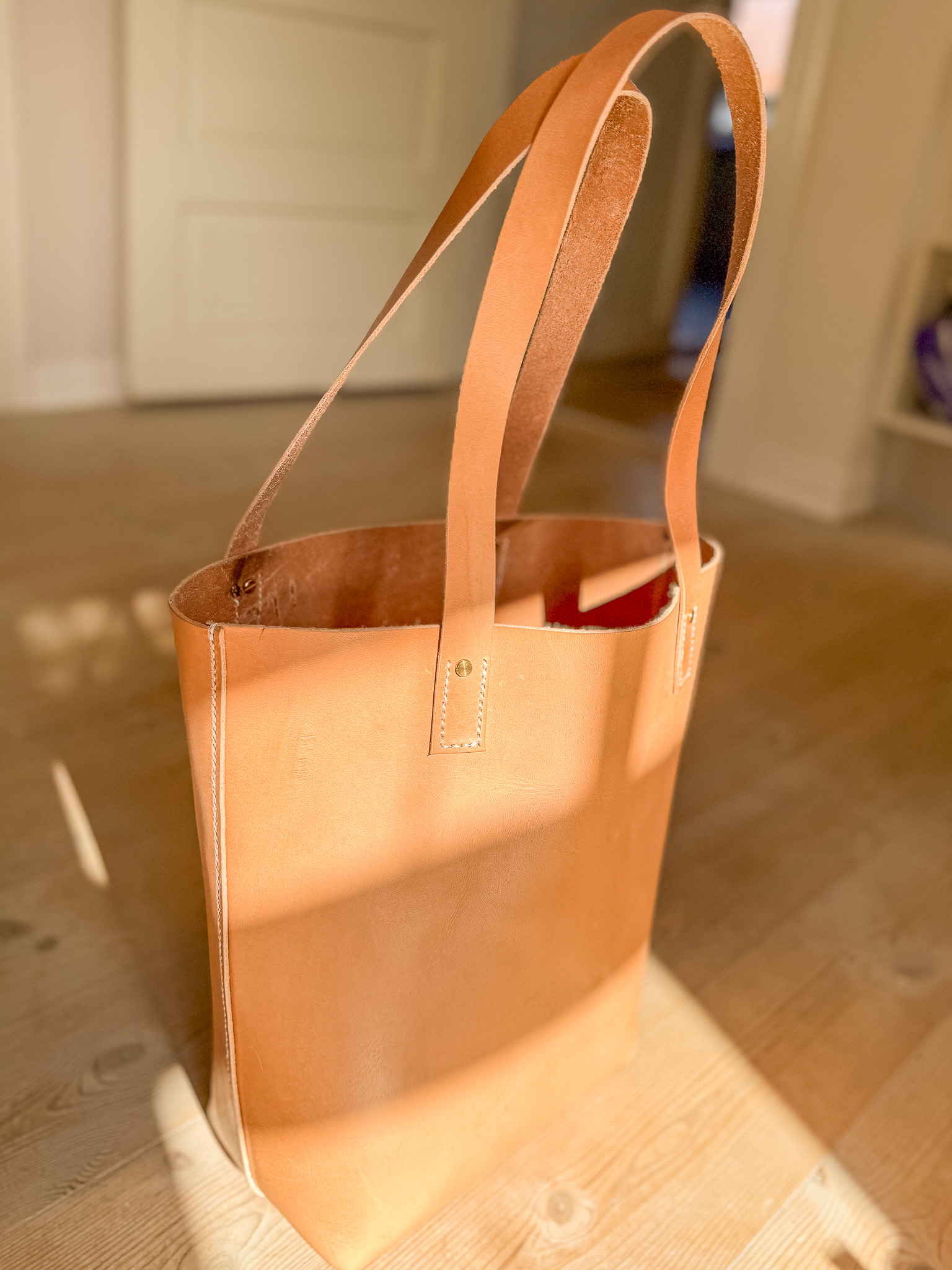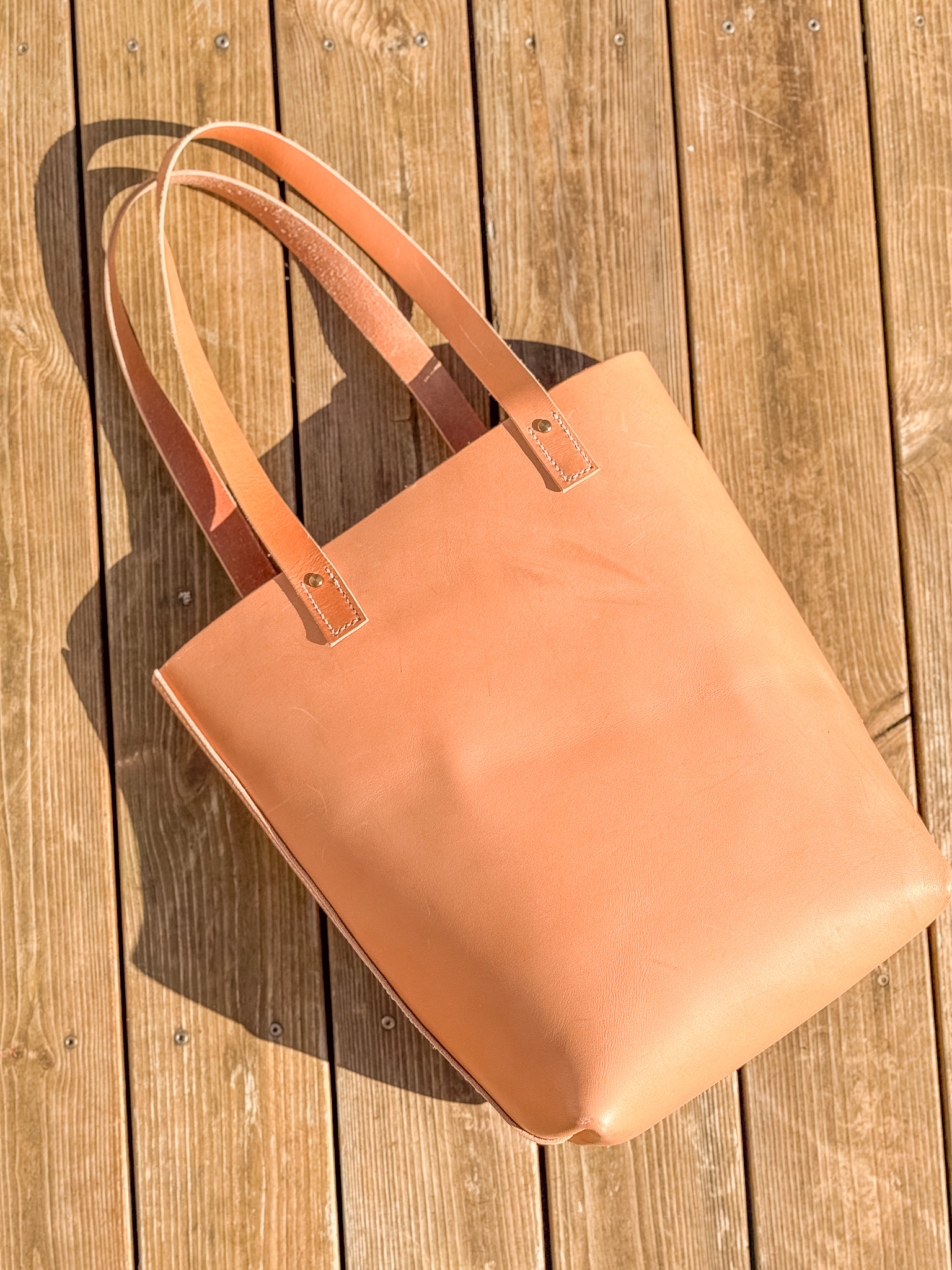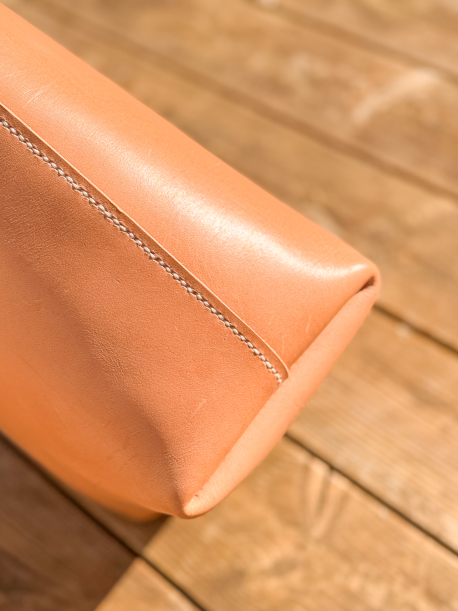 En lædertaske, mulepose, tote… kært barn har mange navne… i kernelæder. Enkel, robust og skabt til hverdagen. Håndlavet i vegetabilsk garvet læder, der udvikler en smuk patina med tiden. En taske med plads til det vigtigste, designet til at holde i mange år og blive flottere for hver dag, du bruger den.