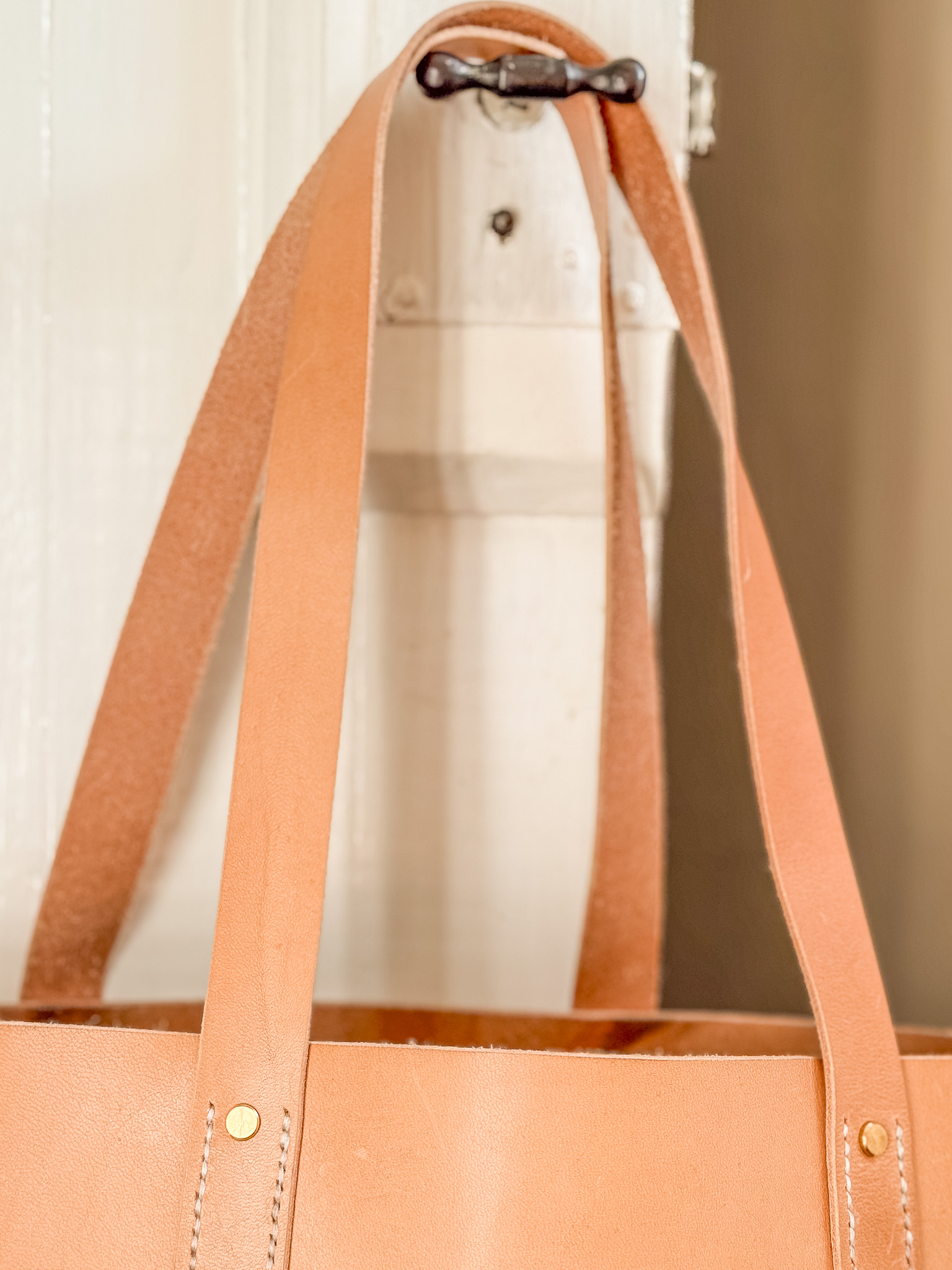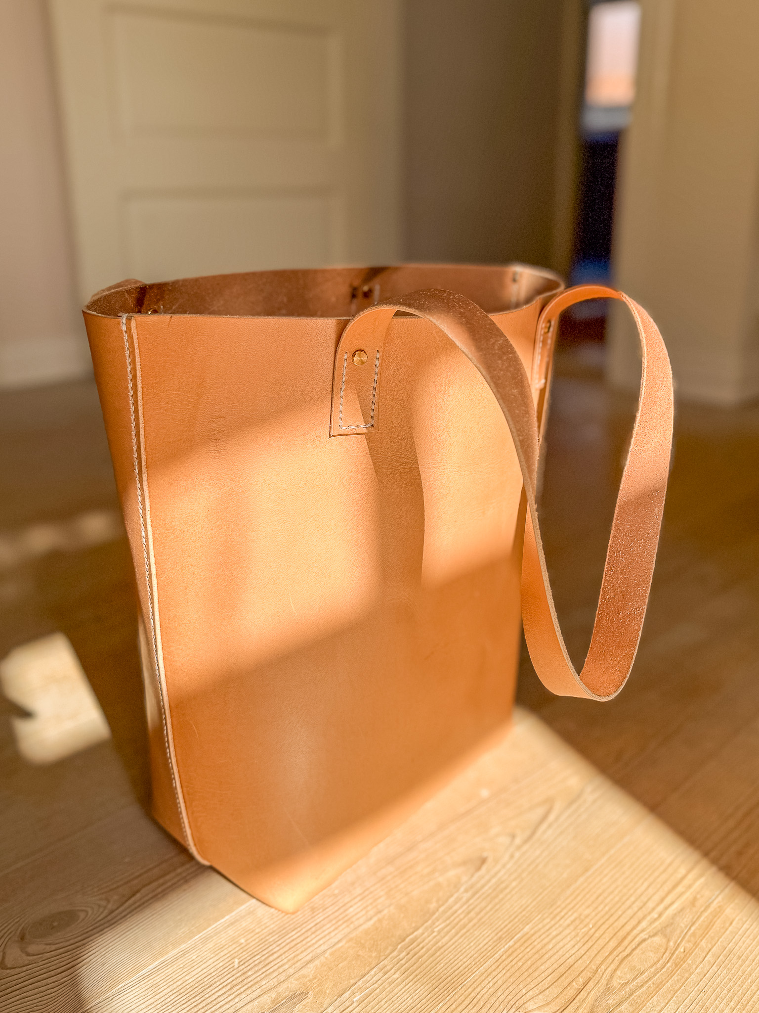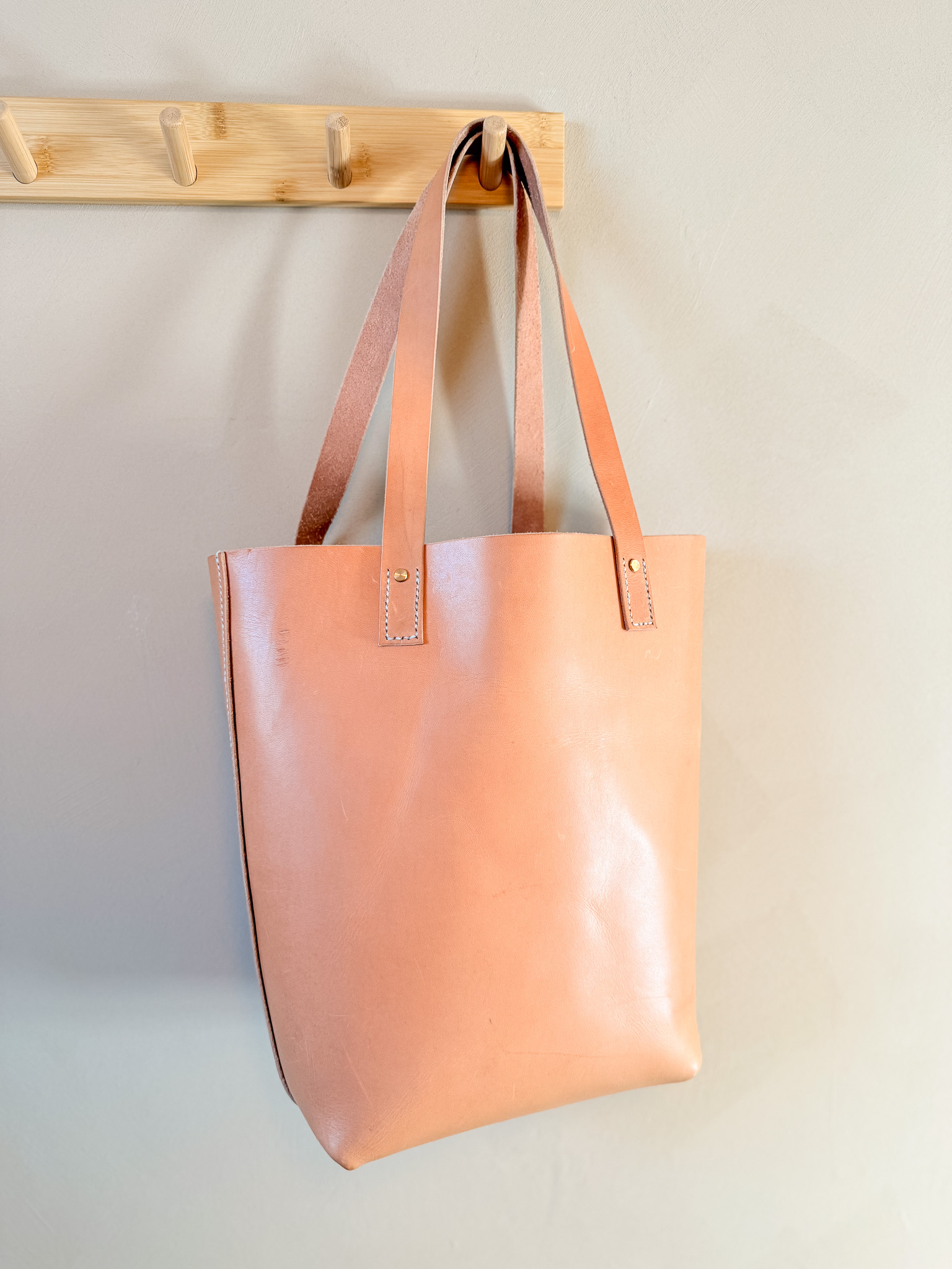 En lædertaske, mulepose, tote… kært barn har mange navne… i kernelæder. Enkel, robust og skabt til hverdagen. Håndlavet i vegetabilsk garvet læder, der udvikler en smuk patina med tiden. En taske med plads til det vigtigste, designet til at holde i mange år og blive flottere for hver dag, du bruger den.